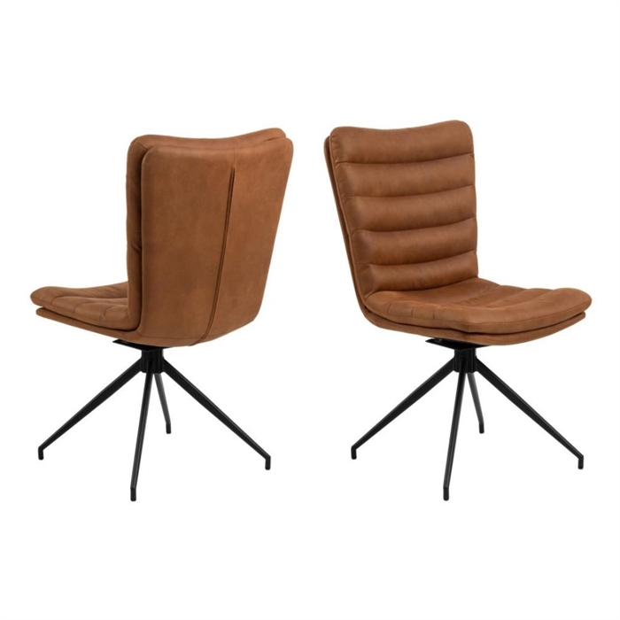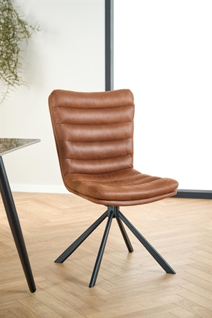 Kombinationen af den varme cognacfarve og det sorte stel giver stolen et moderne og stilfuldt look. Den passer perfekt ind i både skandinaviske, industrielle og mere klassiske indretninger.