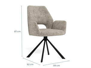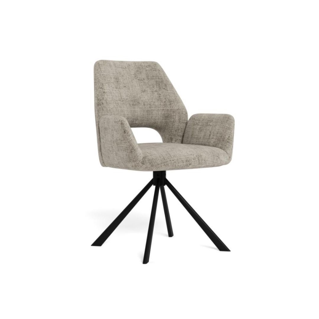 Graham spisebordsstol med armlæn i gråt Juto stof er en komfortabel og moderne stol, der kombinerer funktionalitet med et stilrent design. Med drejefunktion, god siddekomfort og integrerede armlæn er denne spisebordsstol ideel til både hverdag og lange middage.
