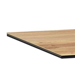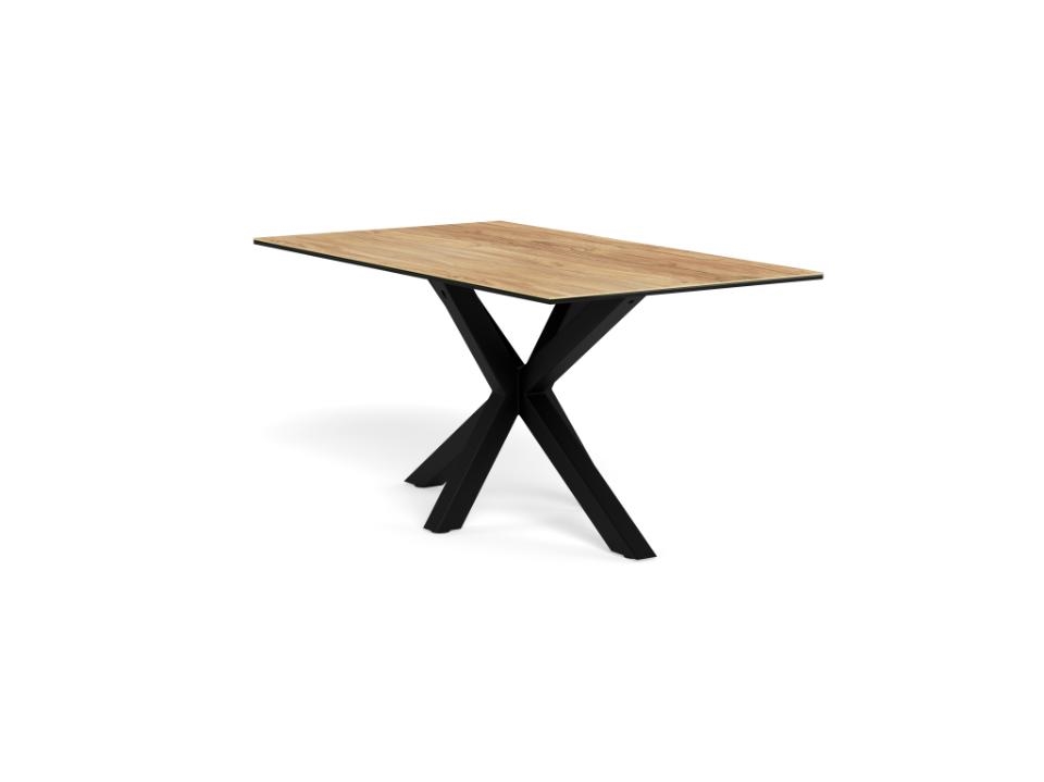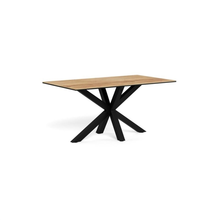 Heaven rektangulært spisebord er et moderne og funktionelt spisebord, der kombinerer et naturligt trælook med slidstærke materialer. Bordpladen er udført i vild eg ru keramik/glas, som giver varme og struktur, samtidig med at overfladen er praktisk og modstandsdygtig. Det 4-stjernede stel i mat sort ru pulverlakeret stål fuldender designet med et stilrent og tidløst udtryk.