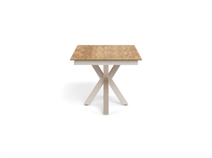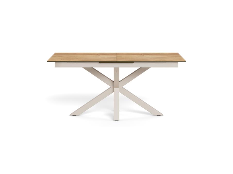 Heaven rektangulært spisebord med synkron udtræk er et fleksibelt og elegant spisebord, hvor funktionalitet og materialevalg går hånd i hånd. Bordpladen er udført i vild eg ru keramik/glas, som giver et naturligt trælook kombineret med keramikkens slidstærke egenskaber. Det 4-stjernede stel i grå ru pulverlakeret stål skaber et roligt, moderne udtryk og sikrer høj stabilitet.