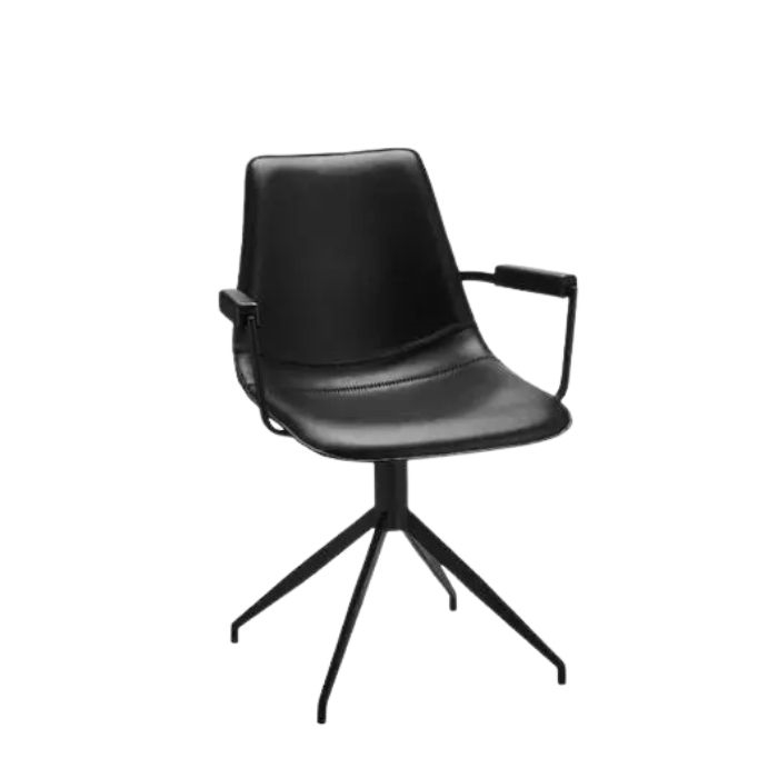Isabel Spisebordsstol med Armlæn – Sort Kunstlæder, Drejefunktion