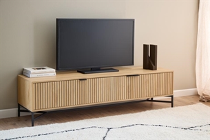 Med sine 3 døre og en åben hylde tilbyder Jaipur TV bordet rigeligt med opbevaringsplads. Bag dørene kan du gemme ledninger, elektronik og andre småting af vejen, mens den åbne hylde er ideel til medieenheder, bøger eller dekorationer.