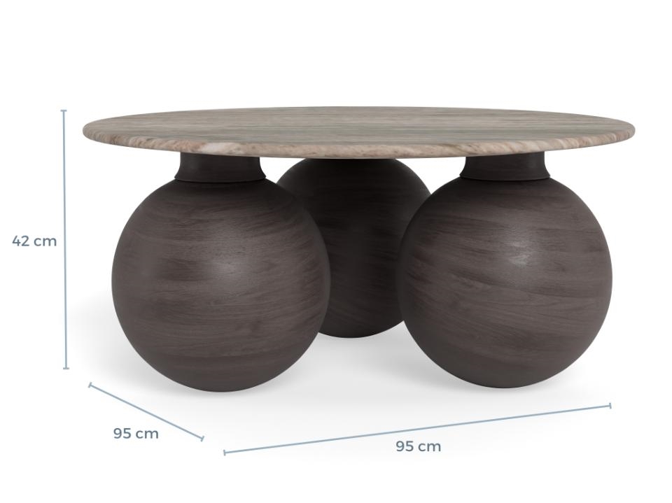 Konya sofabord, brun/marmor - Ø 95 cm