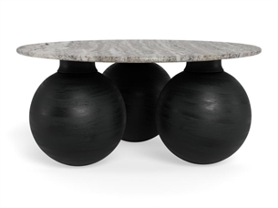 Konya rundt sofabord Ø95 cm i grå Morchana marmor er et eksklusivt og markant sofabord, der kombinerer rå naturmaterialer med et moderne design. Den mørke marmortop og det sorte træstel skaber et kraftfuldt og stilrent udtryk, der passer perfekt ind i nutidige hjem.