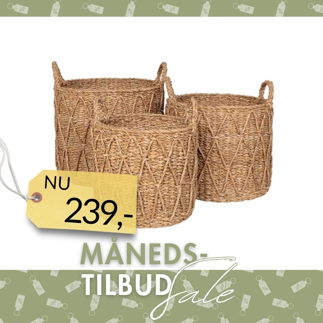Tilføj varme og naturlig charme til dit hjem med dette Krabi kurvesæt i håndflettet søgræs. Sættet består af tre kurve i forskellige størrelser, som giver dig fleksibel og stilfuld opbevaring. Brug dem til alt fra tæpper og magasiner til planter og legetøj – perfekt til både stue, soveværelse og entré.