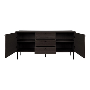 Kyoto - Skænk, 3 skuffer, 2 låger, egefiner, smoked, sorte metalben 150x40x74 cm