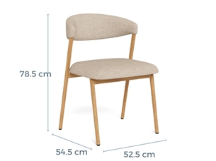 Larry spisebordsstol i beige Cona stof med eg-look stel er en stilren og komfortabel stol, der kombinerer bløde tekstiler med et naturligt træinspireret udtryk. Perfekt til dig, der ønsker en varm og indbydende spiseplads i nordisk stil.
