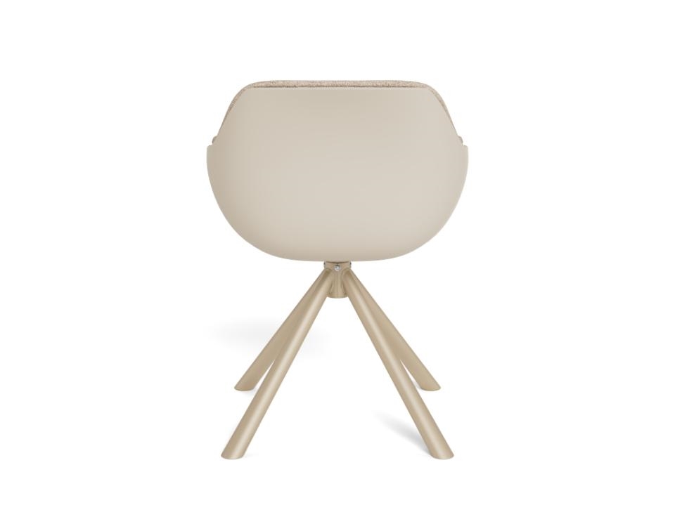 Lenny spisebordsstolens stel er fremstillet i stål med mat beige ru pulverlakering, som matcher stolens lyse udtryk. Den indbyggede drejefunktion gør det nemt at bevæge sig omkring spisebordet uden at flytte stolen, hvilket giver ekstra komfort i daglig brug.