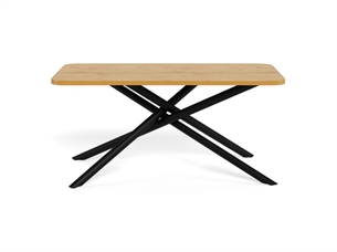 Levanto rektangulært spisebord er et stilrent og funktionelt spisebord, der kombinerer et naturligt trælook med slidstærke materialer. Bordpladen er udført i mat vild eg ru melamin, som giver et varmt og levende udtryk, samtidig med at overfladen er robust og nem at vedligeholde. Det 4-stjernede stel i mat sort ru pulverlakeret stål tilfører et moderne præg og sikrer høj stabilitet.