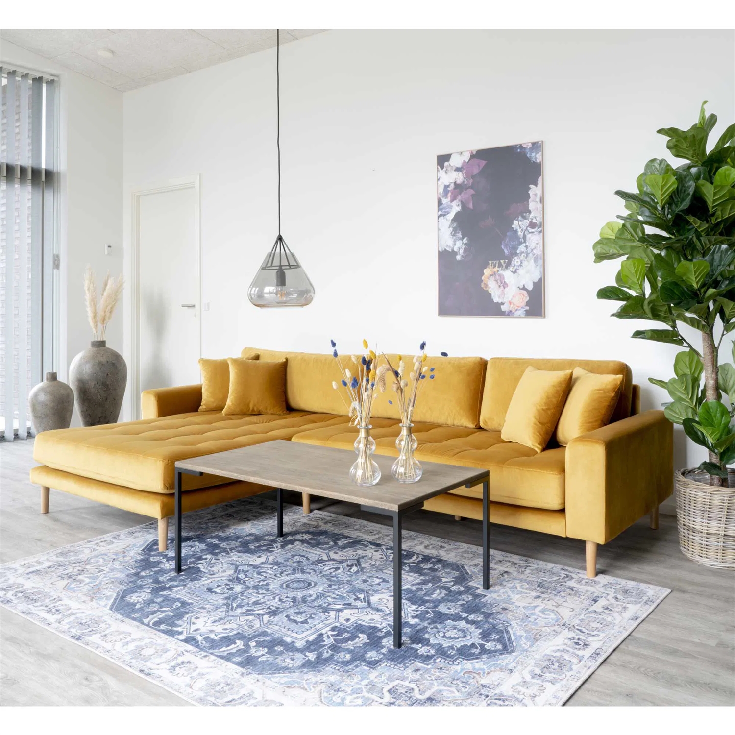 Lounge sofa – venstrevendt elegance i sennepsgul velour