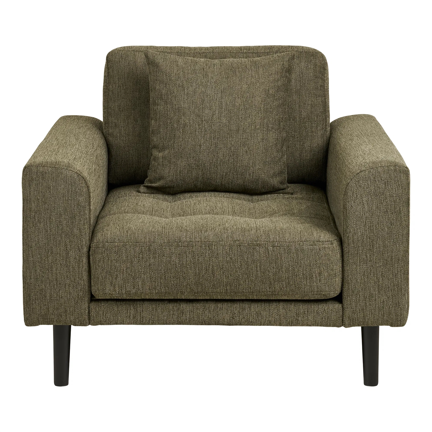 Forestil dig, hvordan Lido Loungestol vil blive et favoritsted i dit hjem. Den komfortable skumfyldte sæde og det bløde polyesterbetræk giver dig den perfekte afslapning efter en lang dag. De elegante olivengrønne farver og de stilfulde sorte træben gør stolen til et både funktionelt og dekorativt element, der tilføjer et moderne touch til dit opholdsrum.