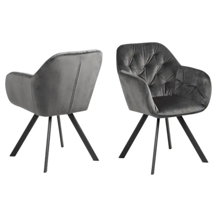 Forestil dig en stilfuld spisestue, hvor Lola Spisebordsstol danner rammen om hyggelige middage og lange samtaler. Den elegante mørkegrå polstring kombineret med stellets fine detaljer og drejefunktion skaber en eksklusiv atmosfære, der både indbyder til komfort og raffineret stil.
