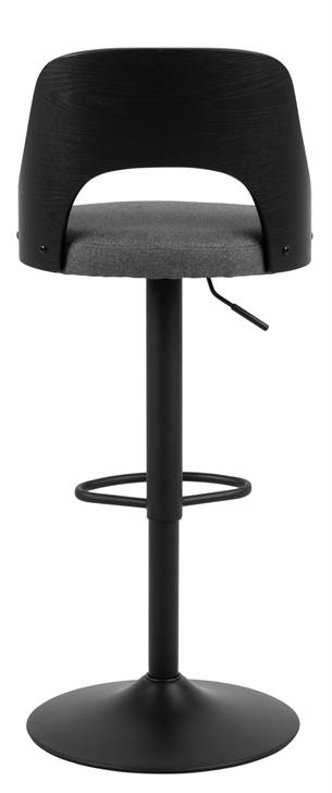 Barstolen er beklædt med Malmo stof i en dyb mørkegrå farve, som giver et stilrent og tidløst udtryk. Stoffet er behageligt at sidde på og egner sig godt til daglig brug.