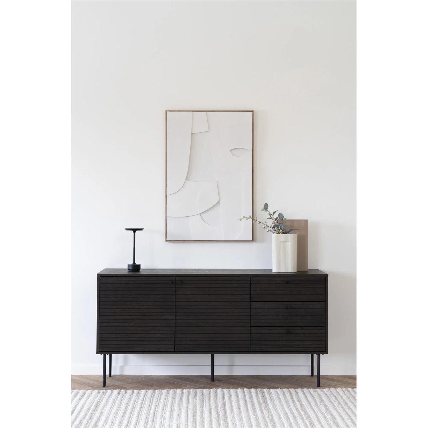 Forestil dig Lyneham LED Bordlampe stående på dit skrivebord, hvor den skaber en fokuseret og behagelig arbejdszone. Den moderne og stilrene design gør den til en smuk og praktisk lyskilde, der passer perfekt til dit hjemmekontor eller natbord. Den sorte farve og det genopladelige design gør lampen både funktionel og æstetisk tiltalende.