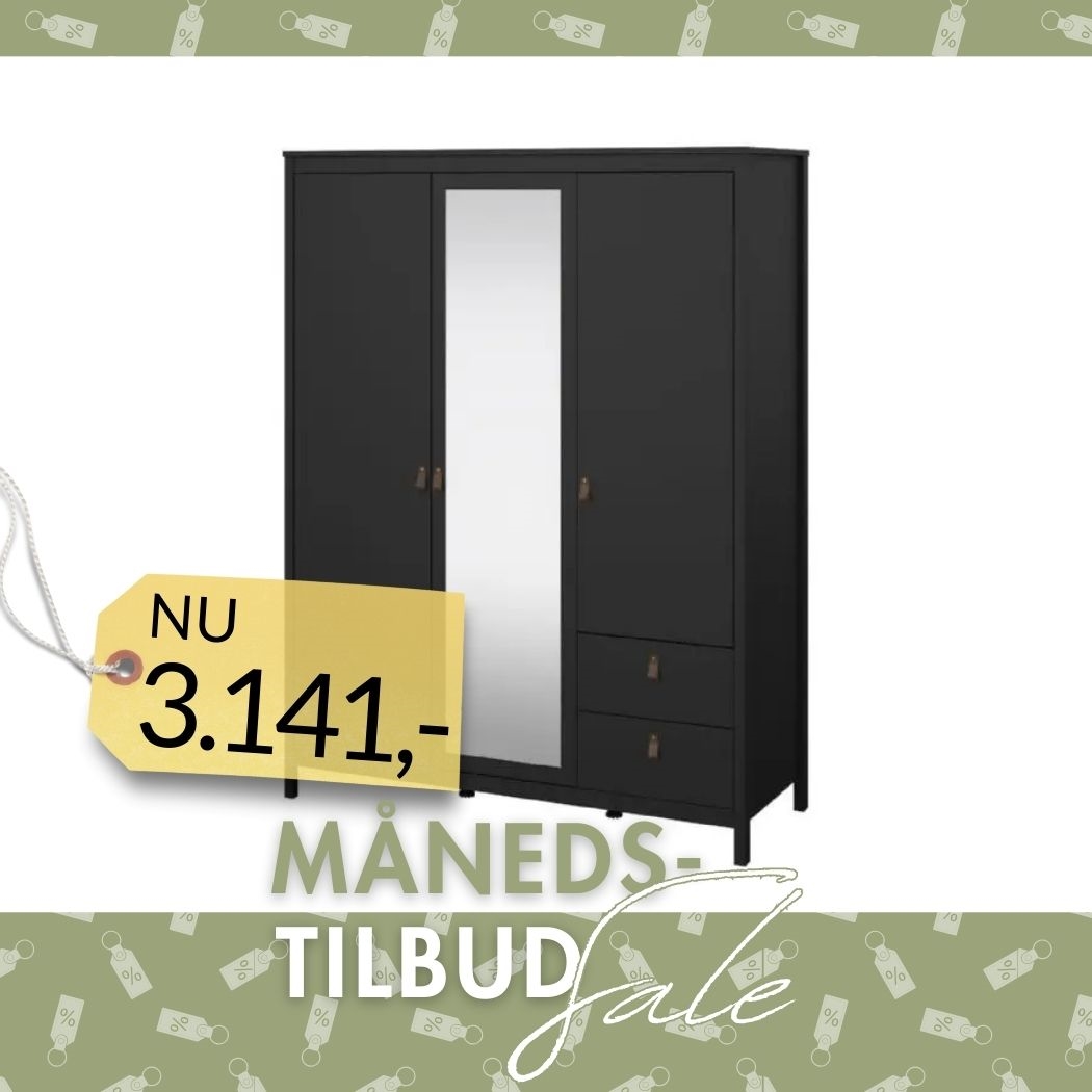 Madrid Garderobeskab 2 låger + 1 spejllåge + 2 skuffer - Matt BlackMadrid nan