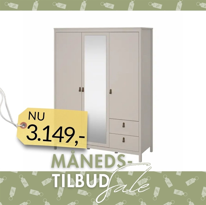 Madrid Garderobeskab 2 låger + 1 spejllåge + 2 skuffer - Cashmere
