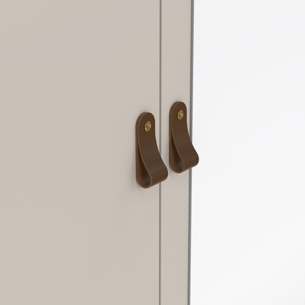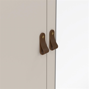 Madrid garderoben leveres med to forskellige greb, så du kan tilpasse udseendet efter din personlige stil. Vælg lædergrebet for et varmt og moderne udtryk eller knoppen for et mere enkelt og klassisk look.