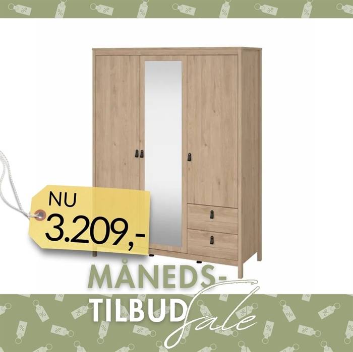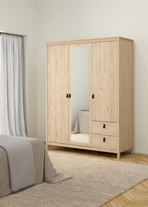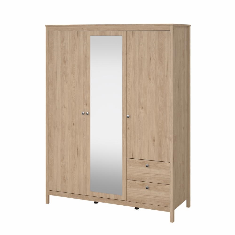 Madrid Garderobeskab 2 låger + 1 spejllåge + 2 skuffer - Jackson Hickory