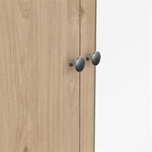 Madrid garderoben er fremstillet i spånplade med folie, hvilket sikrer en stabil konstruktion og en overflade, der er nem at vedligeholde i hverdagen. Jackson Hickory-finishen tilfører varme og karakter og giver garderoben et tidløst og stilfuldt udtryk.