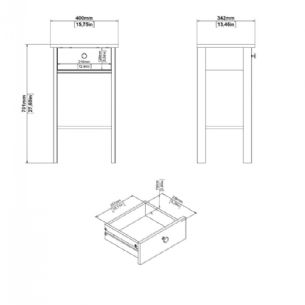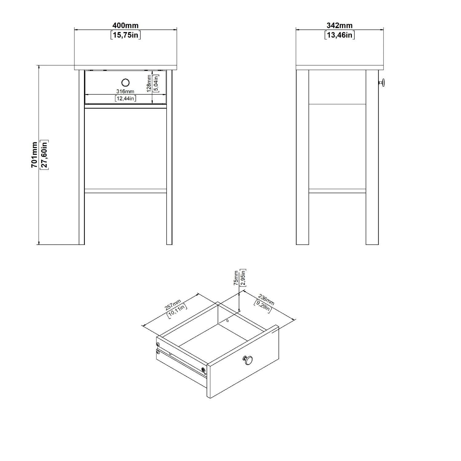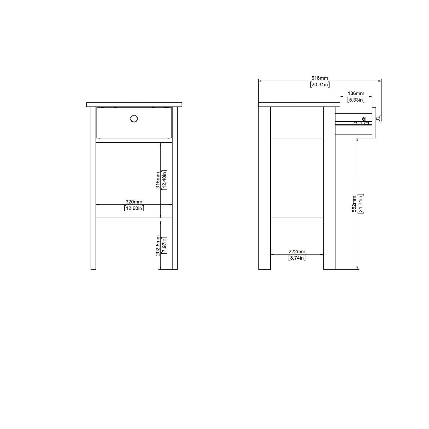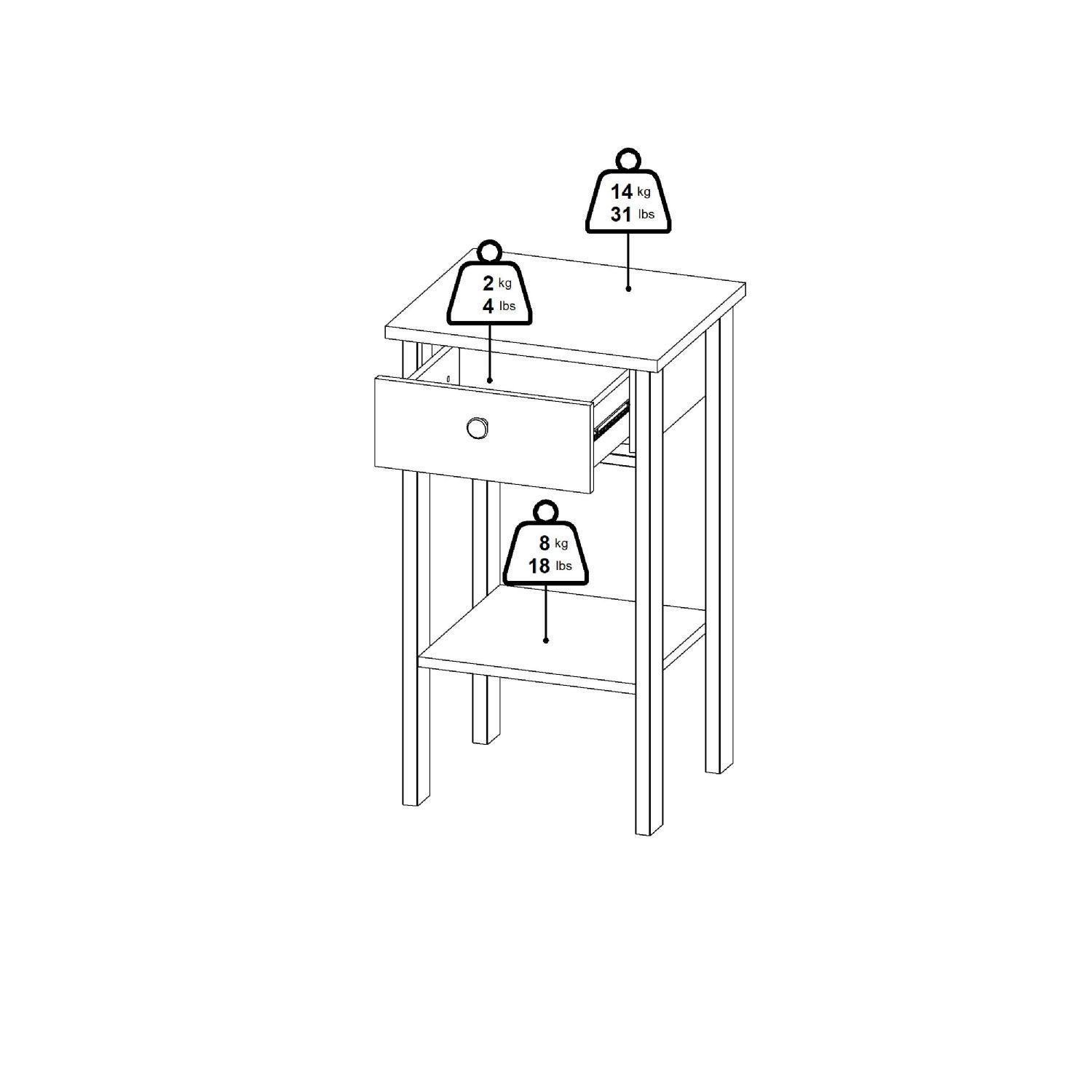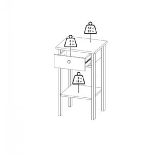 • Opbevaring: 1 skuffe og 1 fast hylde