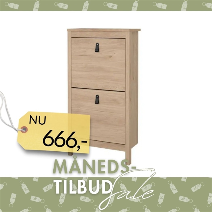 Madrid skoskabet er designet med to klapdøre, der giver en praktisk og pladsbesparende løsning til din skoopbevaring. Skabet har kapacitet til op til 8 par sko, hvilket hjælper med at holde dit fodtøj organiseret og lettilgængeligt.