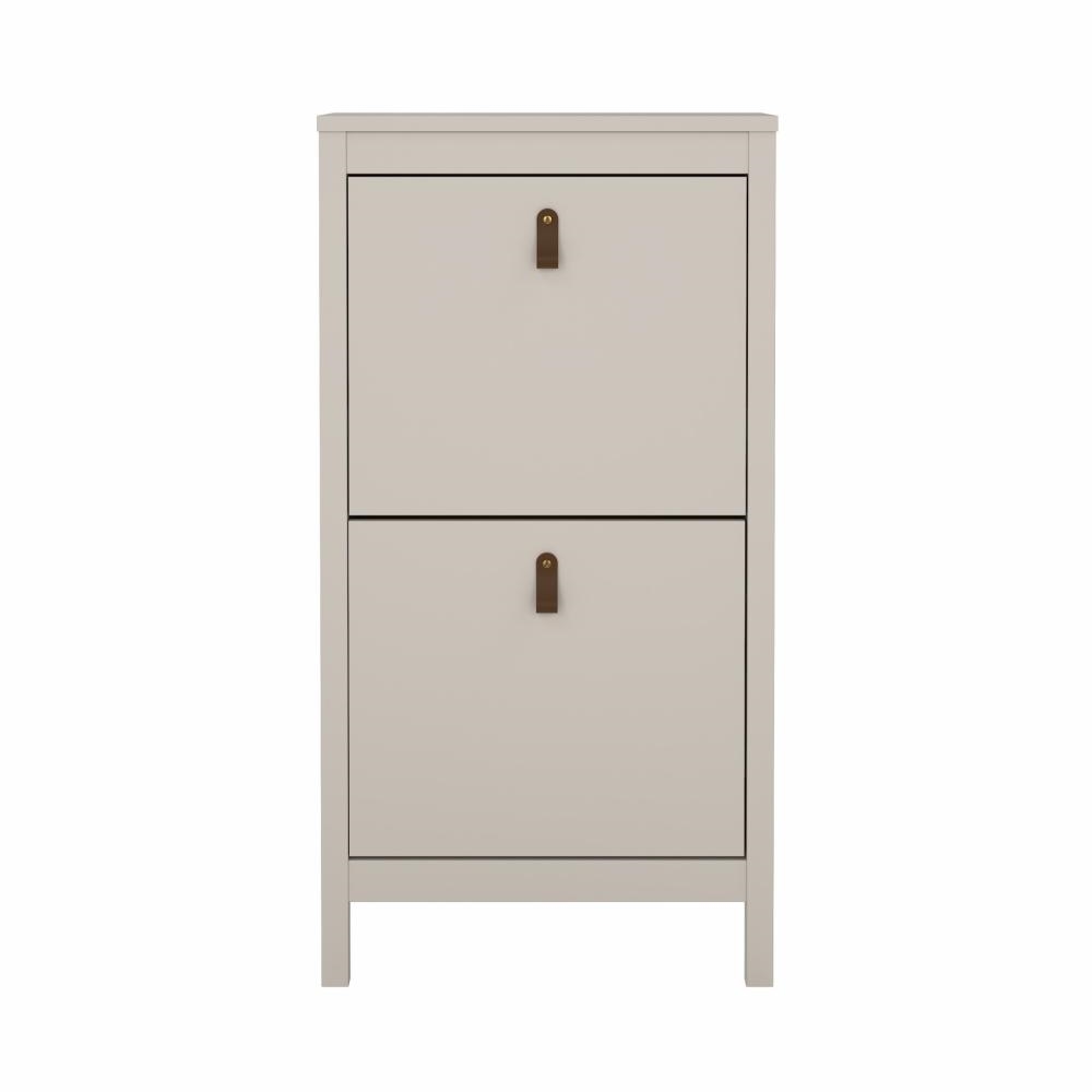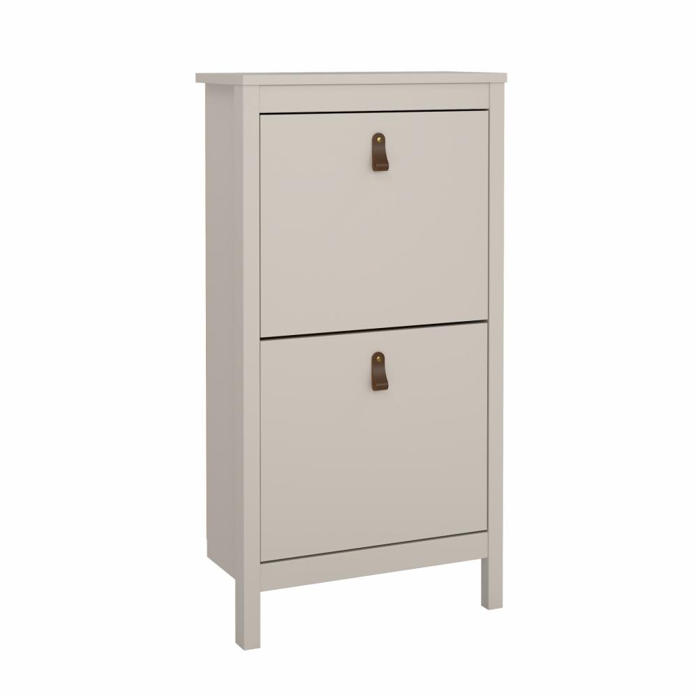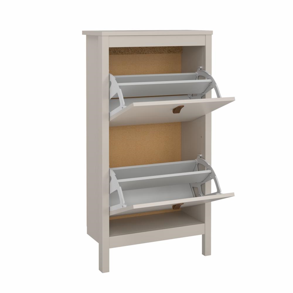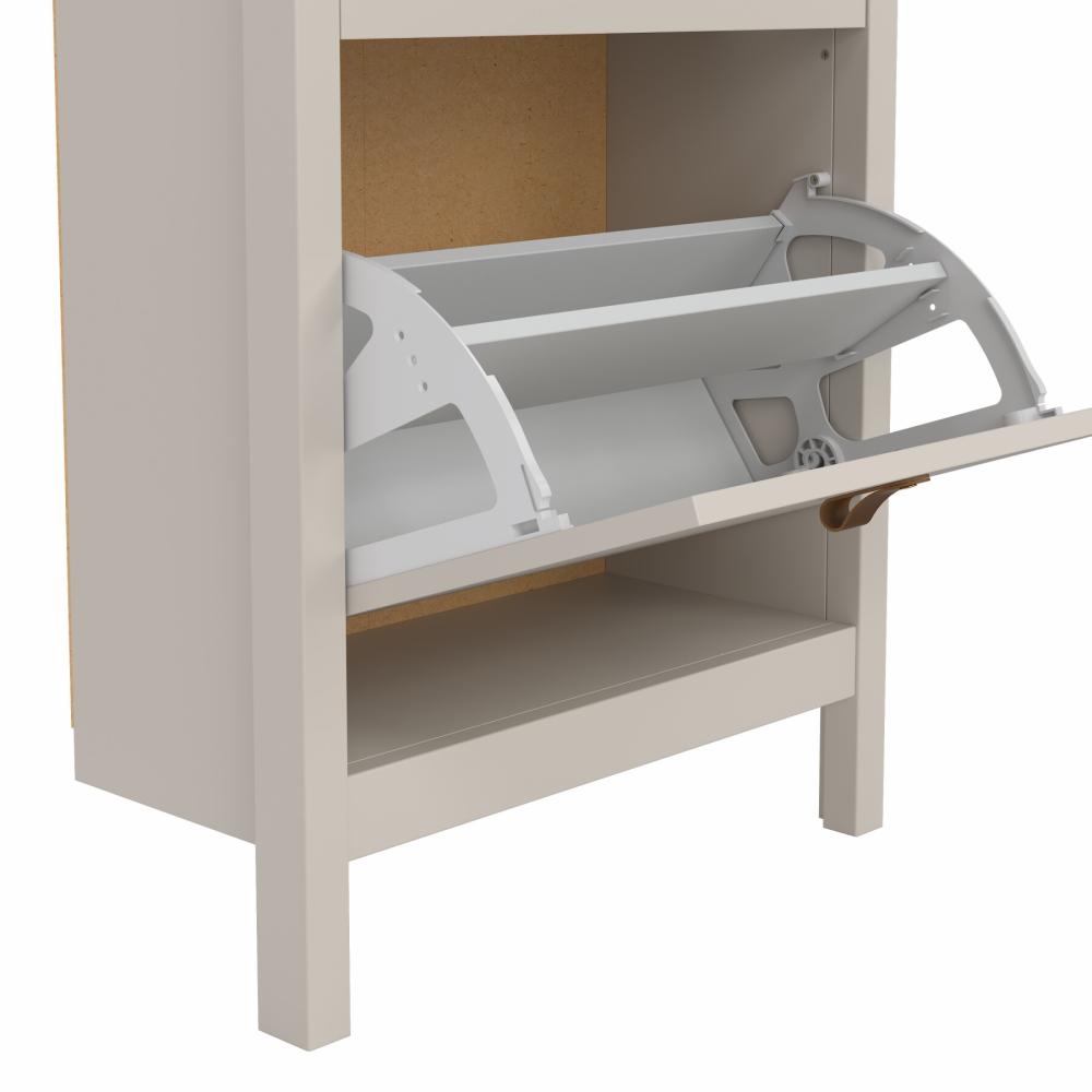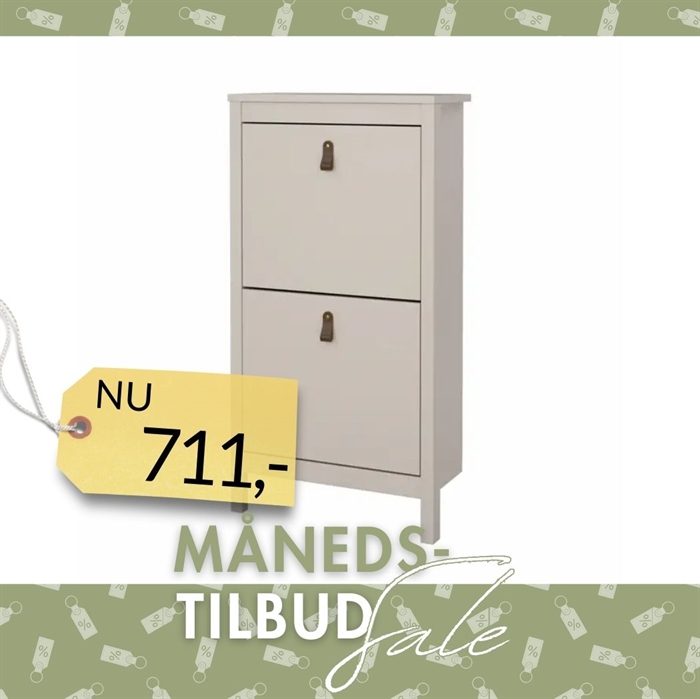 Madrid skoskab med 2 vippelåger i Cashmere er en elegant og pladsbesparende løsning til organisering af sko i entréen. Det slanke design og den afdæmpede Cashmere-farve giver skoskabet et moderne og roligt udtryk, der passer perfekt ind i den nordiske boligindretning.