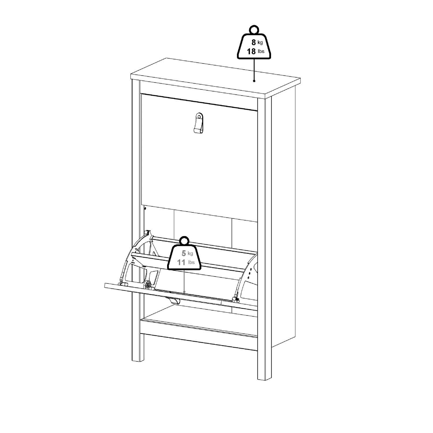 Dette Madrid skoskab er udstyret med to vippelåger, som gør det nemt at opbevare sko diskret og overskueligt. Den smarte klapfunktion giver hurtig adgang til dine sko, samtidig med at de holdes skjult bag lågerne, så entréen fremstår ryddelig.