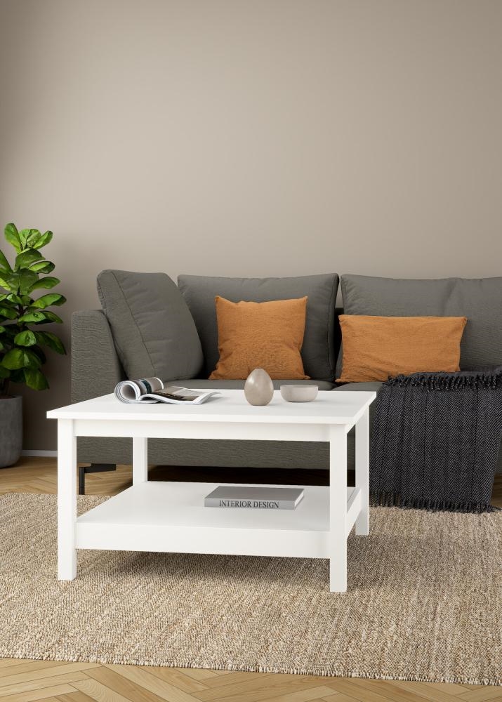 Madrid firkantet sofabord er et stilrent og funktionelt sofabord, der forener minimalistisk elegance med praktisk anvendelighed. Med sit enkle, firkantede design og sin hvide finish passer sofabordet perfekt ind i moderne hjem, hvor rene linjer og funktionalitet er i fokus. Madrid sofabordet er skabt til at fungere som et naturligt samlingspunkt i stuen – uden at dominere rummet visuelt.