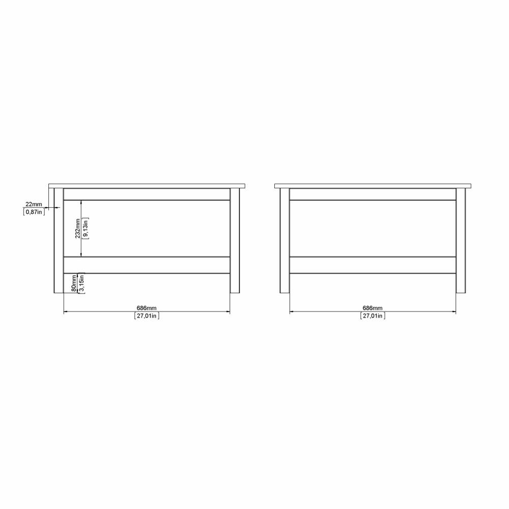 Madrid sofabordet er udstyret med en praktisk nederste hylde, som giver ekstra opbevaringsplads. Hylden er ideel til magasiner, fjernbetjeninger, bøger eller andre småting, du gerne vil have lige ved hånden – uden at de fylder på bordpladen.