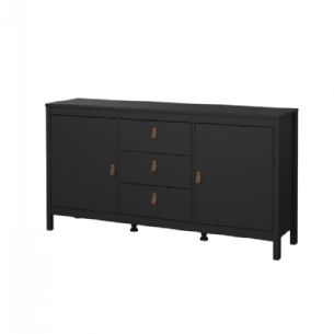 Madrid vitrineskab med 2 glaslåger og 3 skuffer – Mat sort