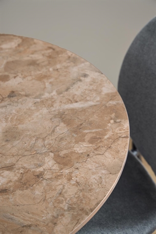 Med sin runde form og luksuriøse keramiske bordplade skaber Malta spisebord en hyggelig og stilfuld spiseplads. Den kompakte størrelse gør det ideelt til mindre rum, mens det tidløse design gør det let at kombinere med forskellige spisebordsstole.
