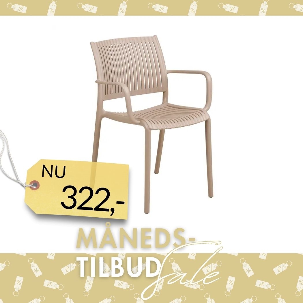 Polypropylen er desuden UV-resistent, hvilket betyder, at stolen bevarer sin taupefarve over tid – også ved placering i solrige omgivelser eller overdækkede uderum.