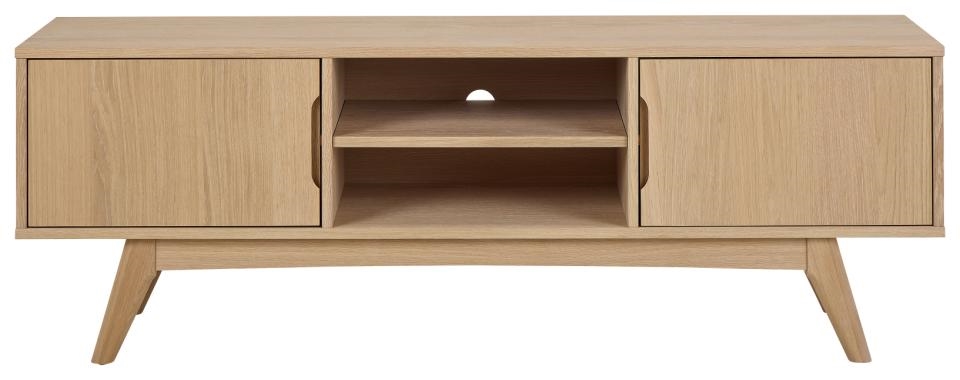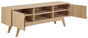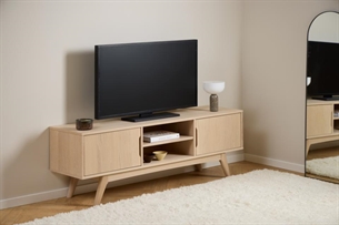 Marte TV bordet er designet med fokus på funktionalitet. De 2 låger skjuler opbevaringsplads, mens de 2 åbne rum giver nem adgang til elektronik som receiver, spillekonsol eller TV-boks.