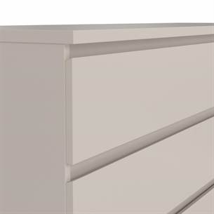 Naia dobbeltkommoden er fremstillet i spånplade med folie, hvilket sikrer en solid konstruktion og en overflade, der er nem at vedligeholde i dagligdagen. Den bløde Cashmere-nuance tilfører varme og elegance og understreger kommodens moderne udtryk.