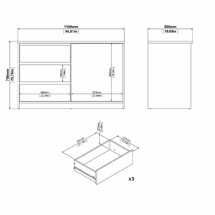 De tre store skuffer giver ekstra opbevaringsplads til tekstiler, dokumenter eller andre hverdagsting og gør det nemt at holde orden i hjemmet.
