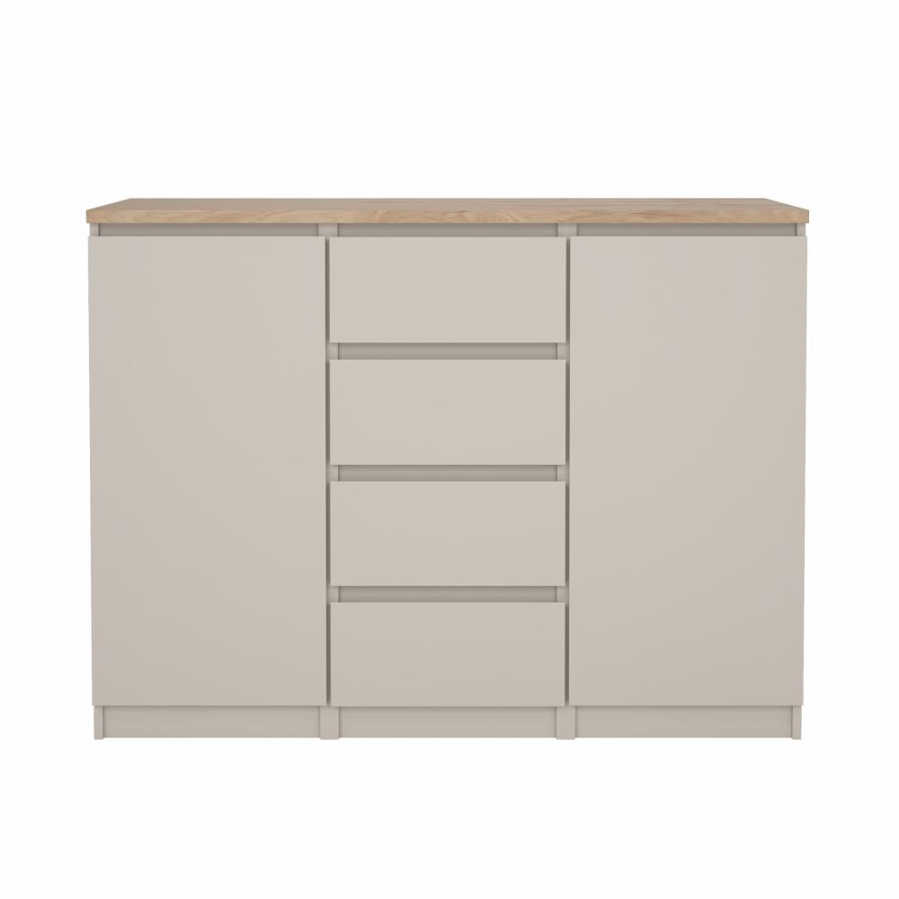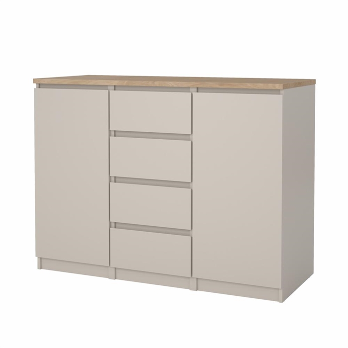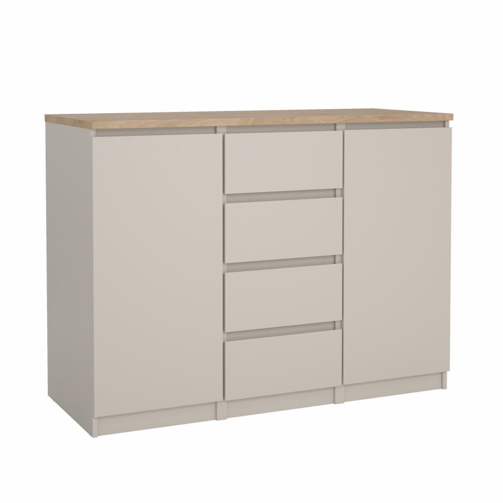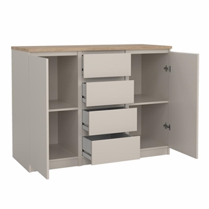 Vælg Naia skænken i Jackson Hickory og Cashmere, hvis du ønsker praktisk opbevaring i et stilrent og tidløst design.