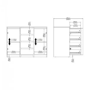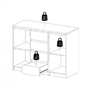 • Opbevaring: 2 døre og 4 skuffer