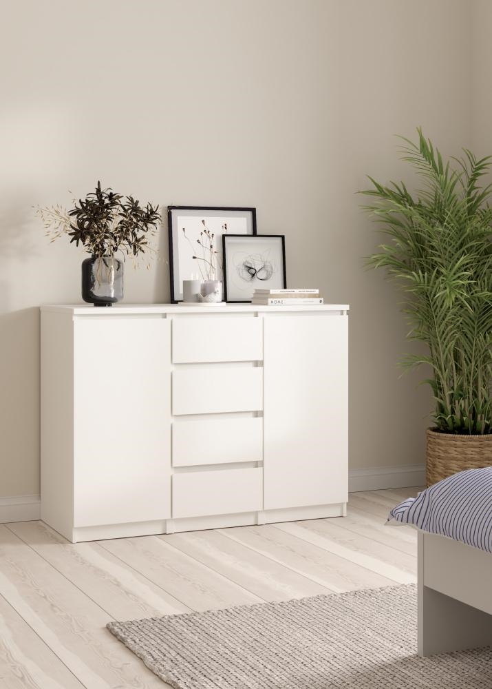 Naia skænk i hvid er et elegant og funktionelt møbel, der forener minimalistisk design med praktisk opbevaring. Skænkens enkle linjer og lyse udtryk gør den til et oplagt valg i den moderne bolig, hvor ro, orden og æstetik går hånd i hånd. Med sin rummelige indretning fungerer Naia skænken perfekt som både opbevaringsmøbel og stilfuldt element i indretningen.