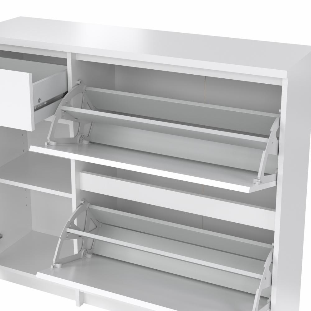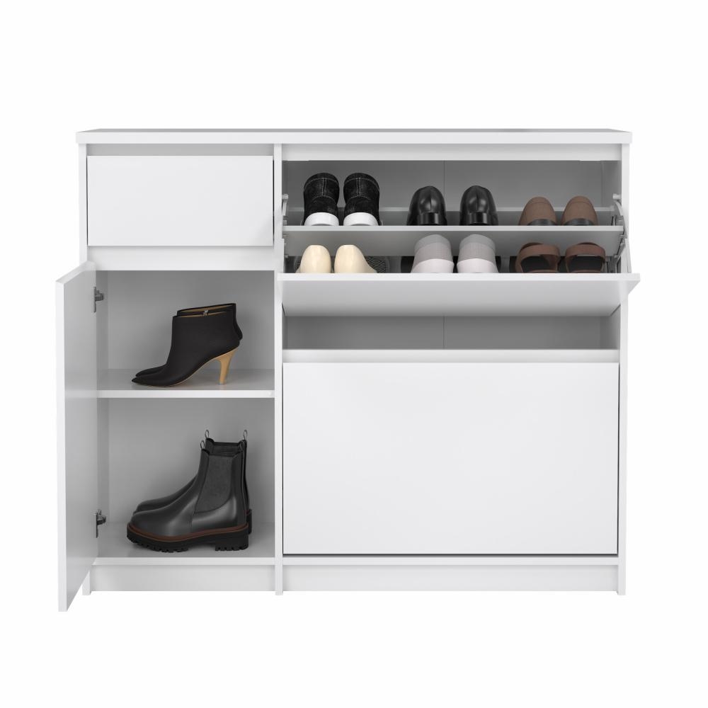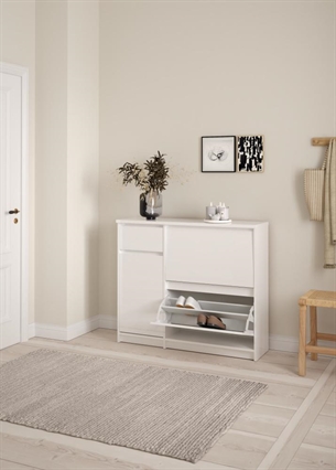Naia Skoskab 2 klaplåger + 1 låge + 1 skuffe - Hvid højglans