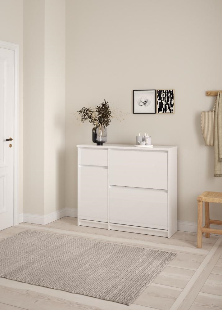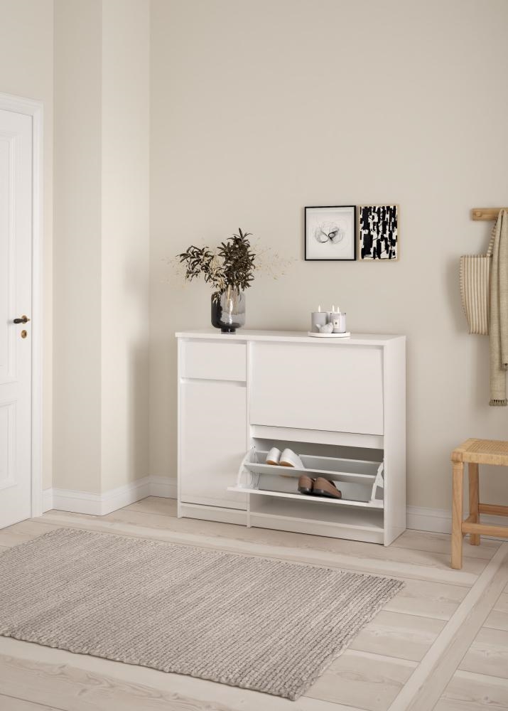 Vælg Naia skoskabet i hvid højglans for en stilren og funktionel opbevaringsløsning til dine sko.