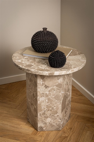 Det eksklusive Naxos hjørnebord kombinerer luksuriøs æstetik med funktionalitet. Bordets både top og søjle er fremstillet i mat Latte lakeret marmor, der tilfører et stilrent og moderne udtryk. Med sin kompakte runde form er bordet ideelt som sofabord, sidebord eller et dekorativt element i din indretning.