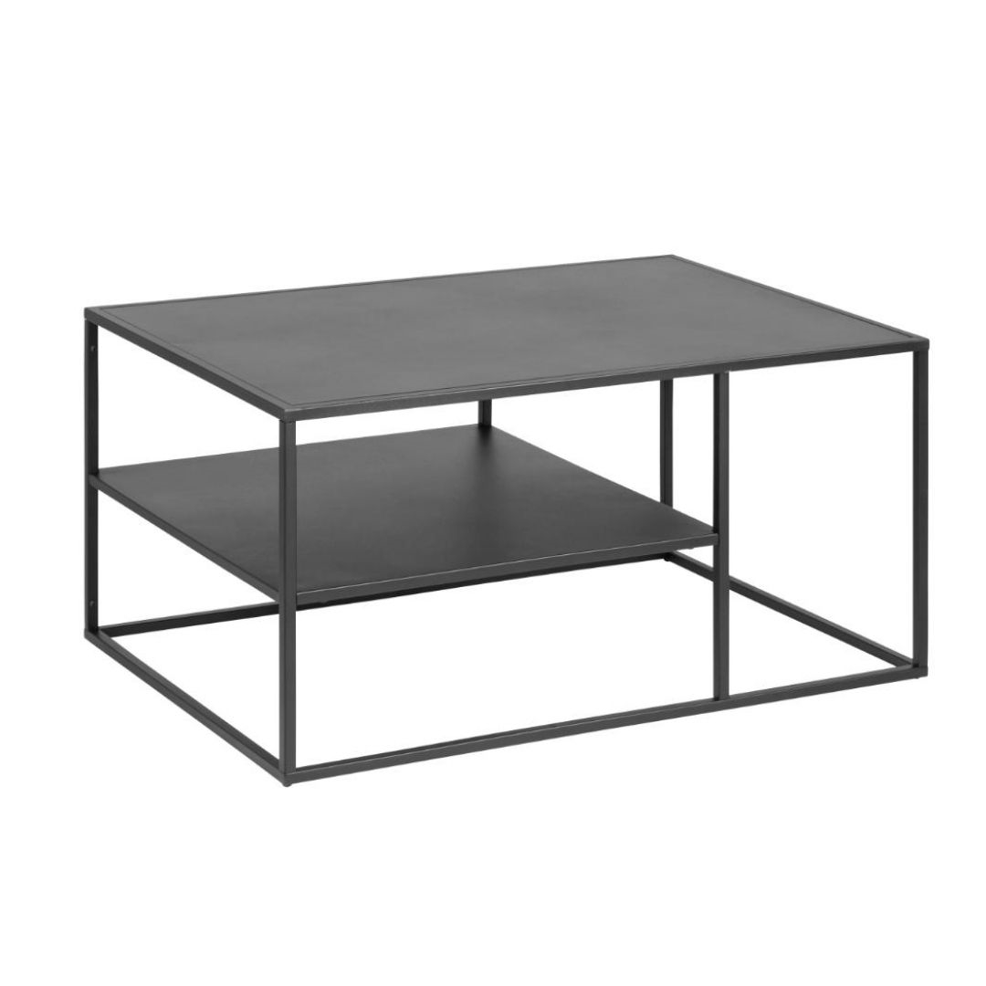 Newton rektangulært sofabord i sort metal 90x60 cm er et stilrent og funktionelt sofabord, der passer perfekt ind i moderne og industrielle hjem. Med sin enkle konstruktion og praktiske hylde kombinerer bordet design og opbevaring på elegant vis.