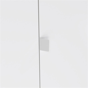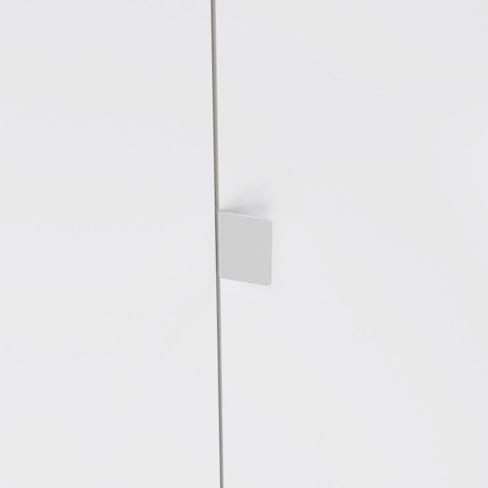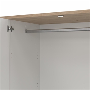 Next garderoben er fremstillet i spånplade med folie, hvilket sikrer en solid konstruktion og en overflade, der er nem at vedligeholde. Jackson Hickory-finishen tilfører varme og struktur, mens den hvide højglans giver et let og moderne udtryk, der balancerer garderobens store format på elegant vis.