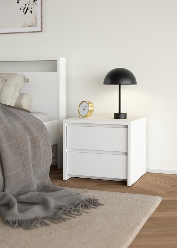 Next sengebord med 2 skuffer i hvid er et stilrent og funktionelt sengebord, der passer perfekt ind i det moderne soveværelse. Med sit skandinavisk-inspirerede design, rene linjer og lyse udtryk bidrager sengebordet til en rolig og harmonisk atmosfære omkring sengen. Samtidig tilbyder det praktisk opbevaring, som gør hverdagen mere overskuelig.