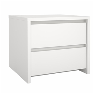 Next sengebordet er fremstillet i slidstærk spånplade med melaminfolie, som sikrer en robust konstruktion og en overflade, der er nem at vedligeholde. Den hvide finish understreger det minimalistiske design og gør sengebordet let at kombinere med både lyse og mørke sengerammer.