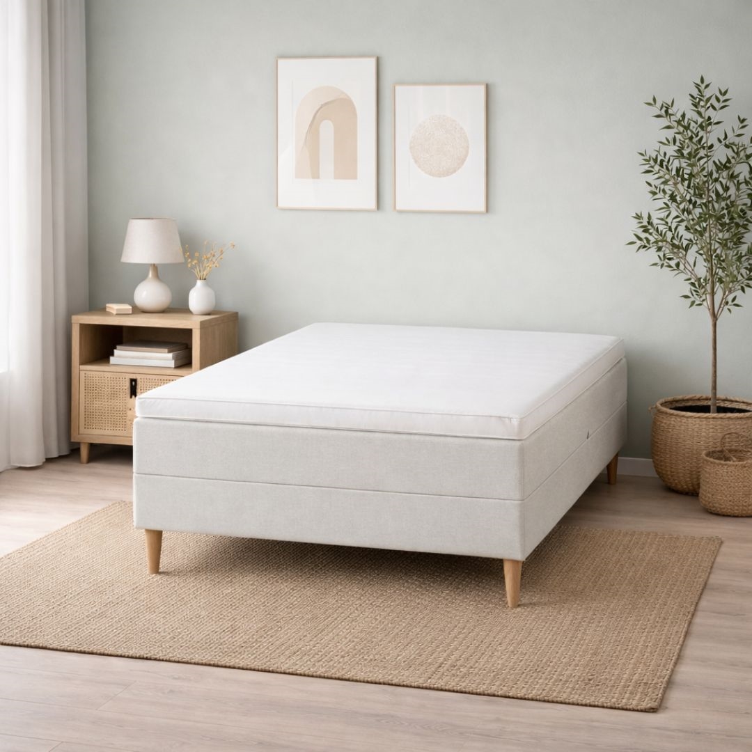 Nordic Heaven Comfort 3/4 Magasinseng med opbevaring i sand – lys komfort og praktisk hverdagsfunktion