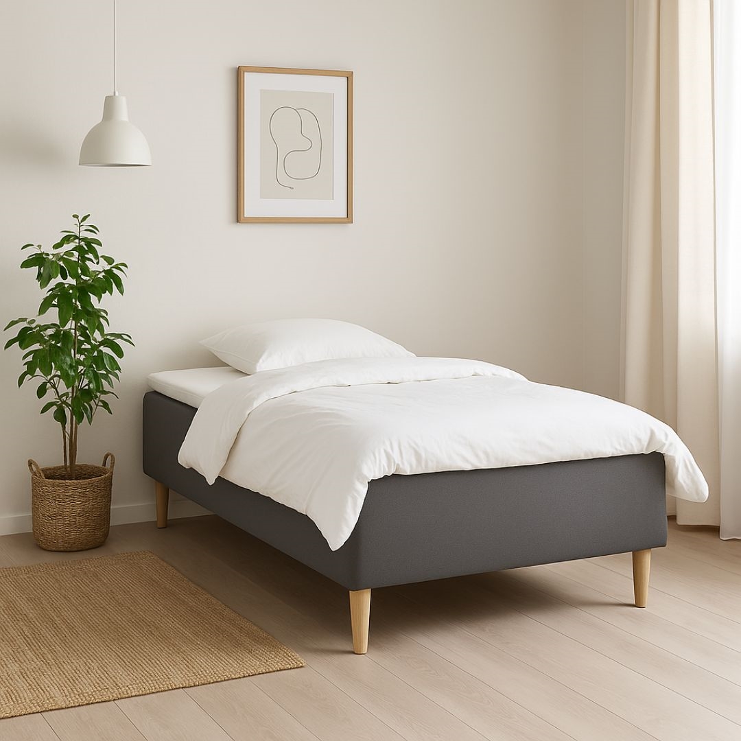 Nordic Heaven Essential 3/4 boksmadrassen i antracit er skabt til dig, der ønsker en komfortabel kvalitetsseng til en skarp pris – perfekt til mindre soveværelser, teenageværelser og gæsteværelser. Med en fast komfort, dobbeltfjedret opbygning og dansk design får du en seng, der kombinerer stabilitet, ergonomi og moderne æstetik. Essential-serien er udviklet med fokus på value for money og giver dig en solid seng, der holder sin form og støtte i mange år.
