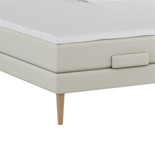 Nordic Heaven Essential dobbelt elevationsseng i sand er udviklet til dig, der ønsker en rummelig 180 x 200 cm seng med moderne elevation, stabil komfort og et roligt, nordisk udtryk. Den sandfarvede tekstilramme giver et lyst og harmonisk udtryk i soveværelset, mens konstruktionen kombinerer trådløs elevation, ergonomisk pocketfjederopbygning og en robust skumkerne for en stabil og afbalanceret liggeoplevelse.
