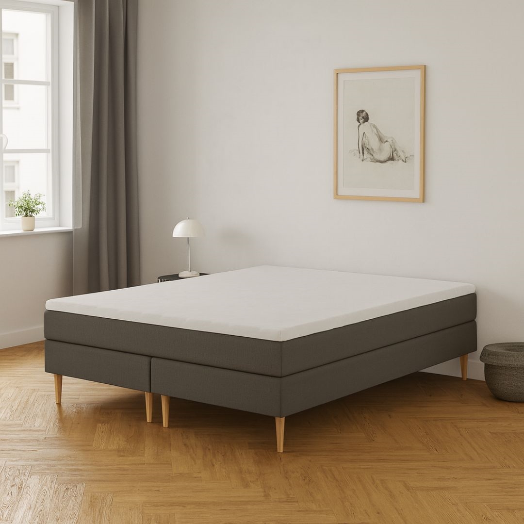 Nordic Heaven Essential dobbelt kontinentalseng i antracit er udviklet til dig, der ønsker en stabil, komfortabel og elegant dobbeltseng med solid dansk designtradition. Denne model kombinerer dobbeltfjedret opbygning, 5-zonet ergonomi, praktisk topmadras og et flot visuelt udtryk i mørk antracit. Resultatet er en seng, der både ser indbydende ud og giver en stabil, fast og velafbalanceret liggeoplevelse – nat efter nat. Essential-serien er skabt for dig, der vil have maksimal værdi for pengene uden at gå på kompromis med kvalitet og komfort.