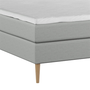 Topmadrassen består af 40 mm polyetherskum, som giver en jævn, fast og forudsigelig overflade. Poly er et praktisk materiale, der holder sin form og gør det nemt at vedligeholde et højt komfortniveau i mange år. Topmadrassen spiller tæt sammen med kontinentalsengens lagdelte konstruktion og giver en oplevelse af fasthed og støtte, som mange foretrækker i en dobbeltseng.